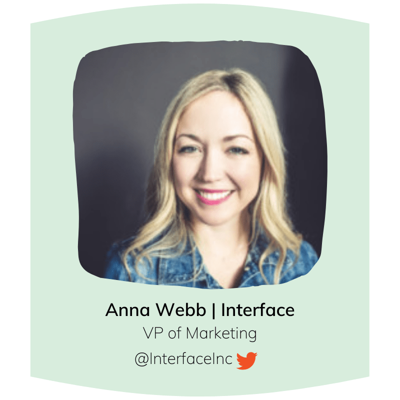 Webb: I’ve had many moments that I can point to as contributing to where I am today, but the common thread in all of those examples is risk. The biggest example of this was when I left an industry that was very familiar to me – food. I had been a marketer of food in one way or another for nearly a decade. And, while I loved it, there was something very intriguing about trying something new. But I was terrified. A mentor of mine, Jo Ann Herold, convinced me that moving to Interface was the right move for me, and, nearly 6 years later, I couldn’t agree more. People value your functional expertise as much as your industry expertise. Specializing isn’t a bad thing, but trying something new also keeps your perspective fresh. Put yourself out there!
